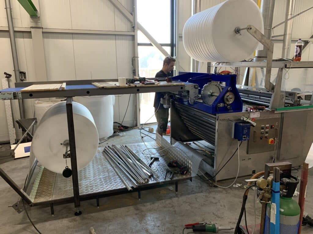 In 2021 kregen we een verzoek van Leo Verstegen om het proces van het omwikkelen van houten latjes, die cruciaal zijn voor het beschermen van gevoelige oppervlakken tijdens transport en opslag, verder te automatiseren en daarmee de efficiëntie te vergroten. In reactie daarop hebben we een geavanceerd aanvoersysteem voor houten latjes ontwikkeld en geïntegreerd met een automatisch invoersysteem in de latjesmachine.